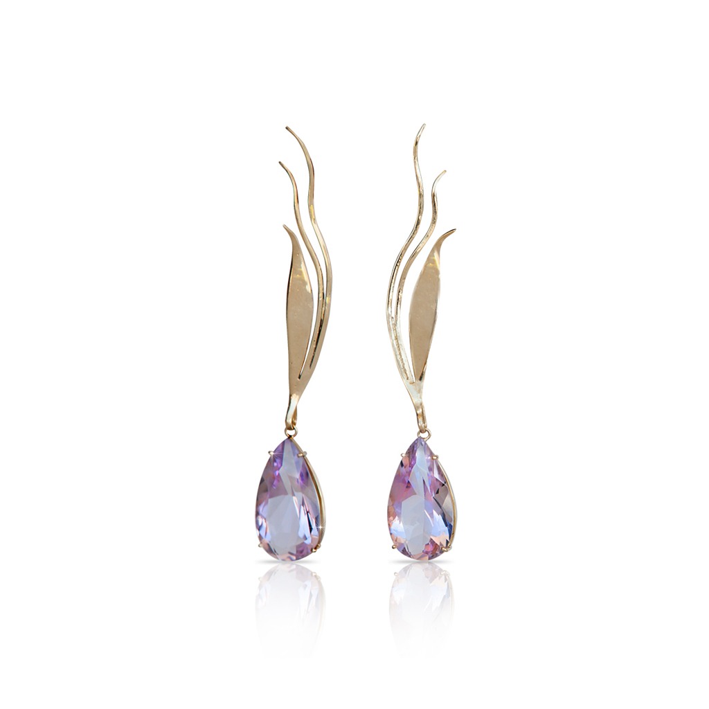 Aros de Oro Amarillo 18 K (Quilates) con gema Ametista en forma de gota