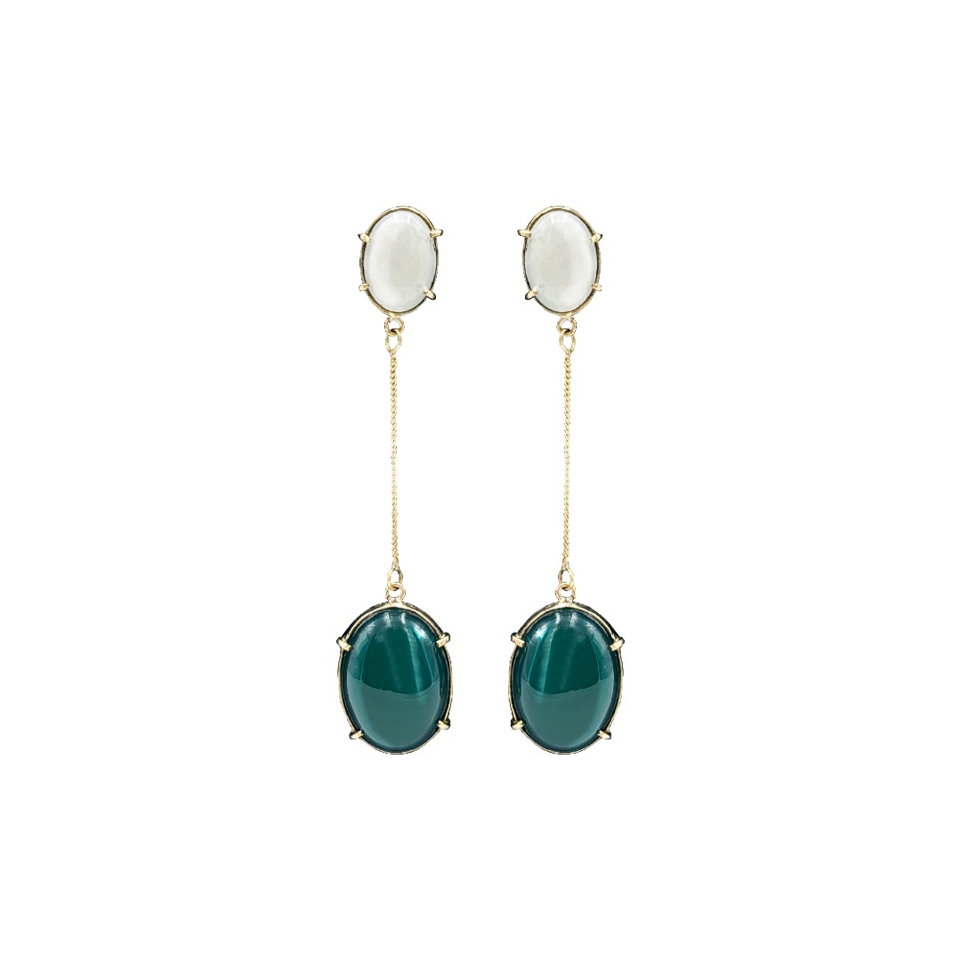 Aros de Oro amarillo 18K con gemas Agatas verdes y blancas oval