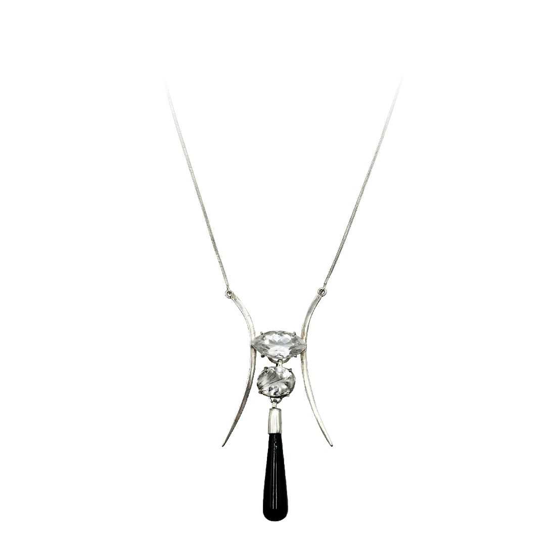Collar de Plata 925 con gemas Cristales de roca rutilados y gota de Onix negro